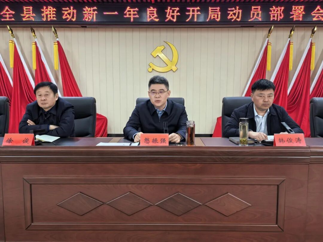 2月4日上午,全县推动新一年良好开局动员部署会召开。县委副书记、县长憨振强参加并讲话,强调要贯彻落实党中央、省委和市委要求,动员全县上下以“开局就是奋斗、起步就要奋进”的昂扬姿态,压实责任、凝聚合力,确保新一年开好局、起好步。