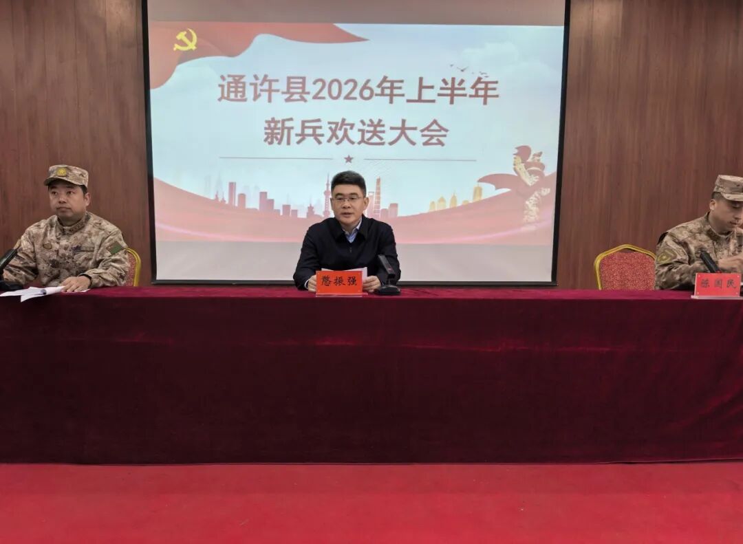 3月17日,我县举行2026年上半年新兵欢送大会,县委副书记、县长憨振强出席大会并讲话。县委常委、县人武部政委李学超,县人武部部长陈国民参加欢送会。