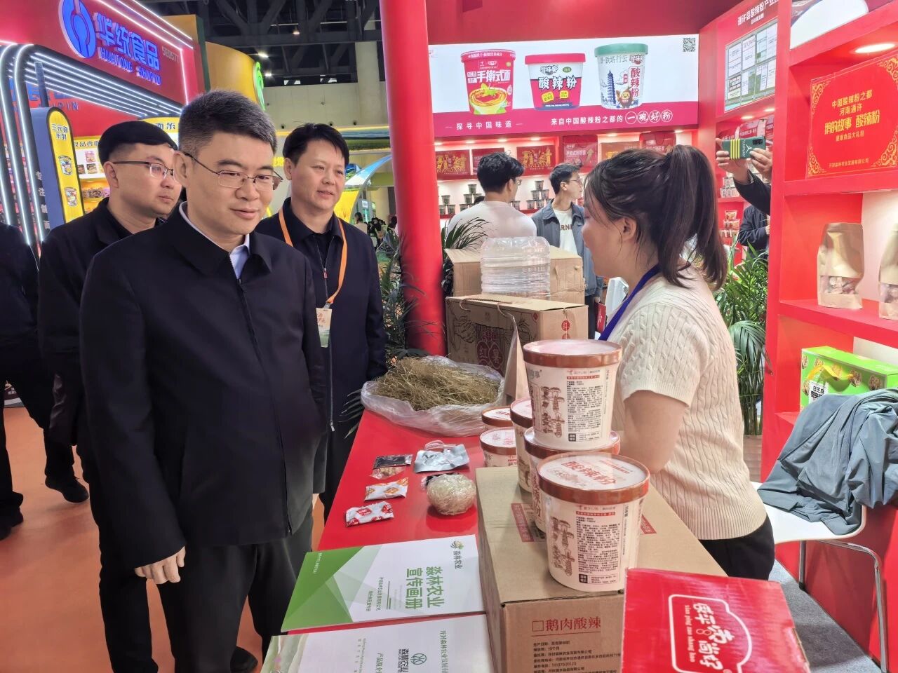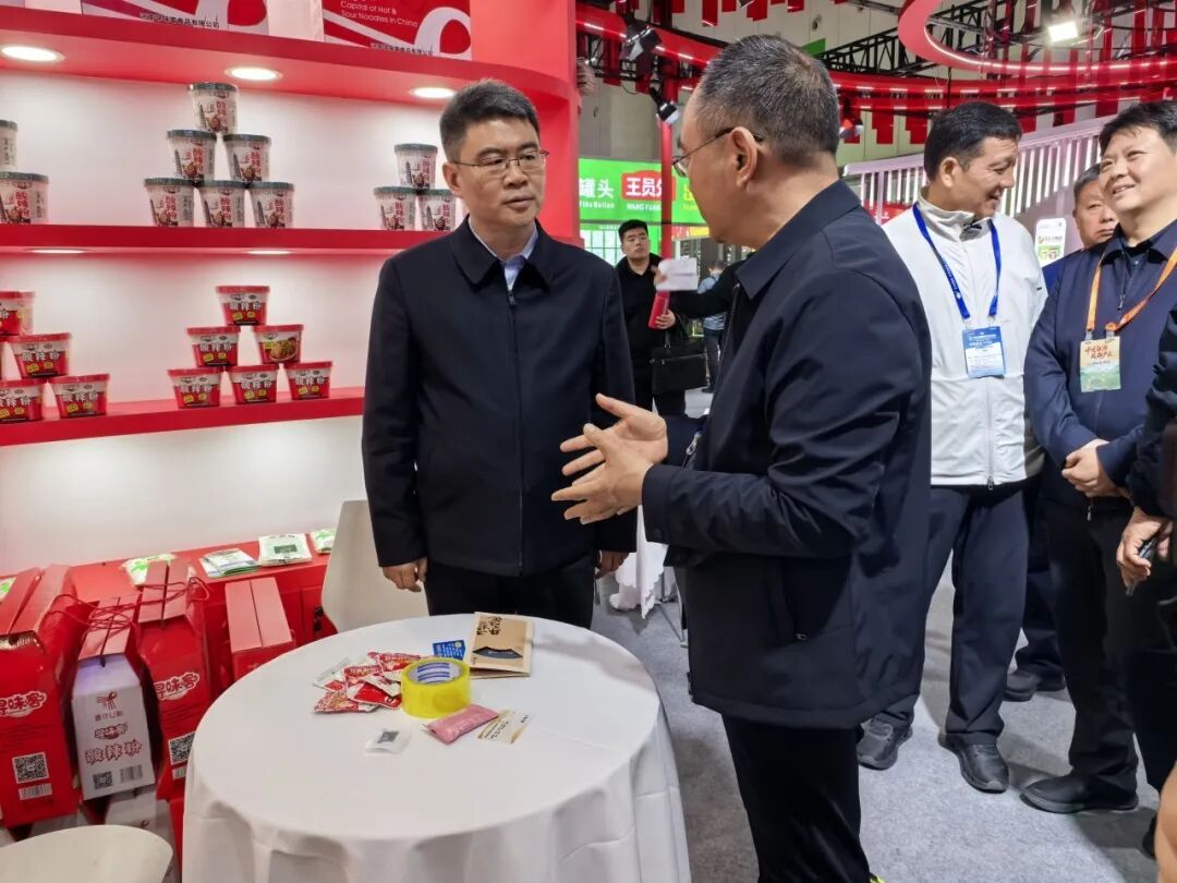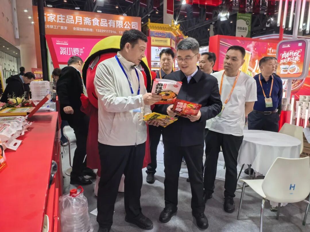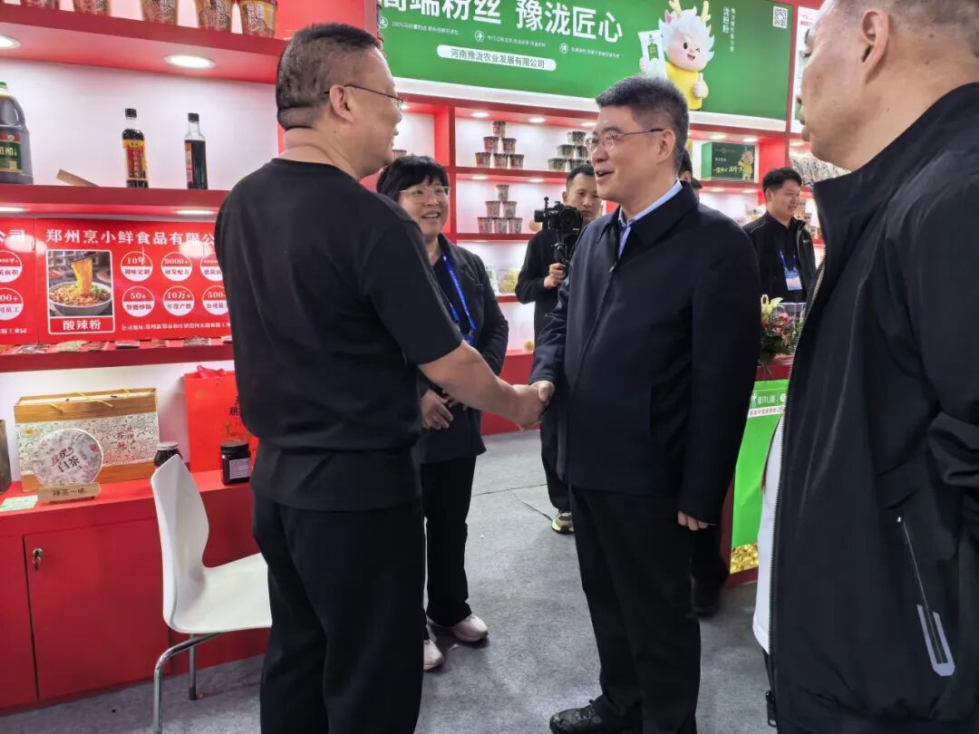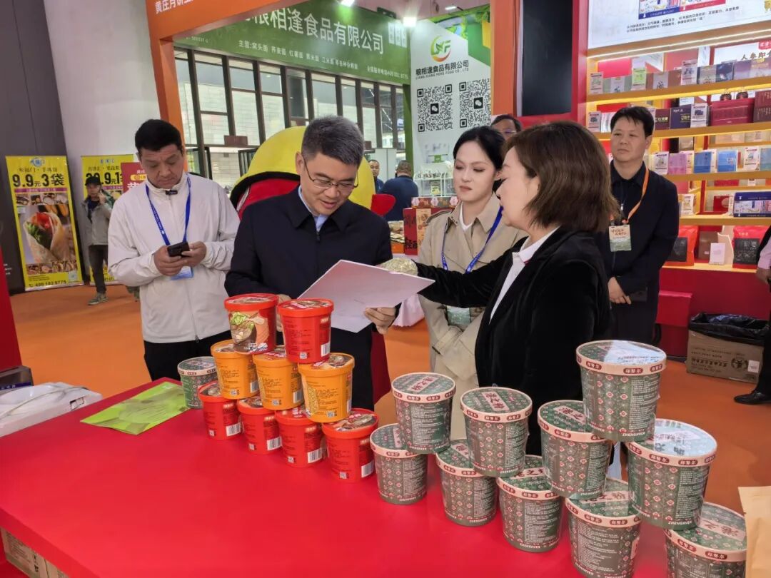 随后,憨振强一行还参观考察了申唐集团、微念食品(李子柒、臭宝)、紫林醋业、豫泷农业、酒鬼花生等产业相关品牌展区。