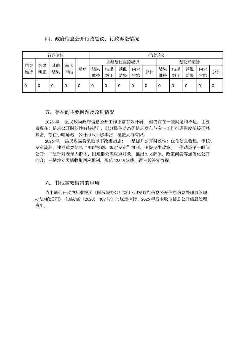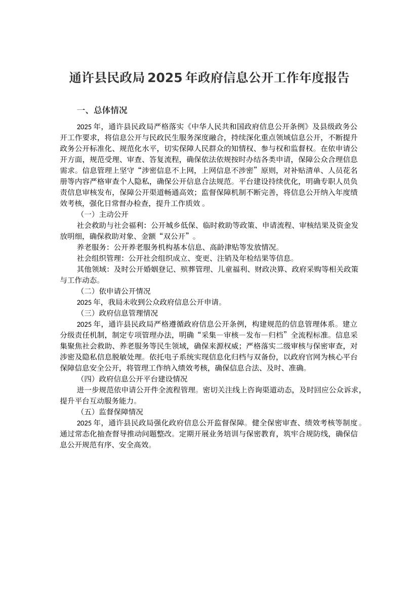 通许县民政局2025年政府信息公开工作年度报告