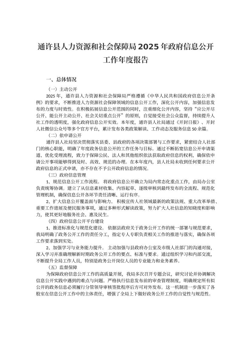通许县人力资源和社会保障局2025年政府信息公开工作年度报告