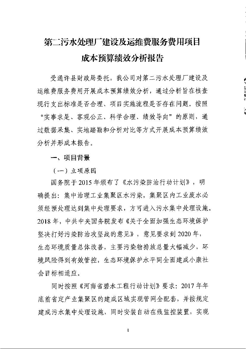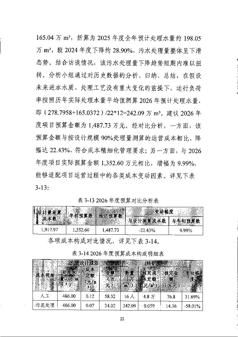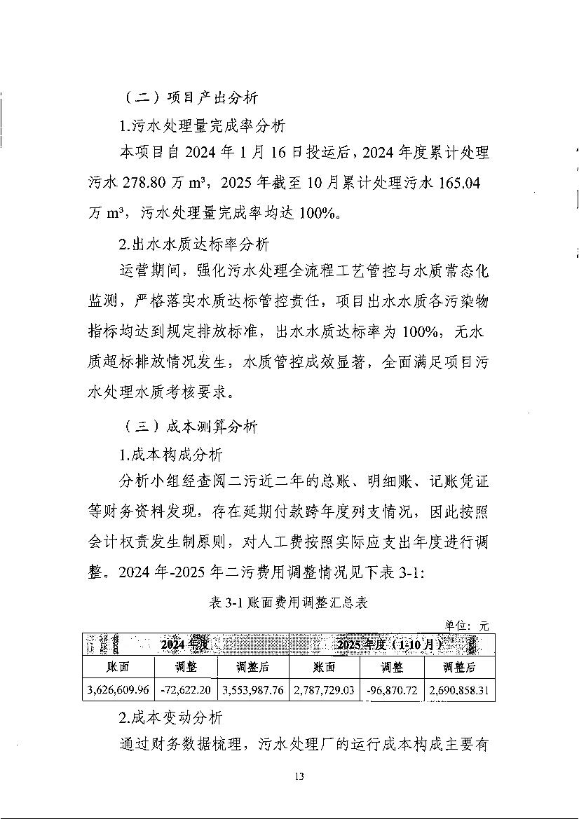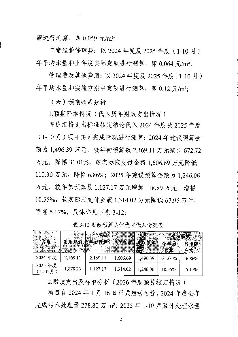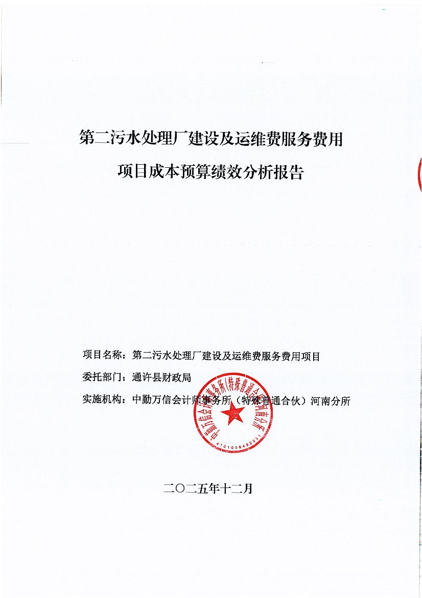 2025年度第二污水处理厂建设及运维费服务费用项目成本预算绩效分析报告