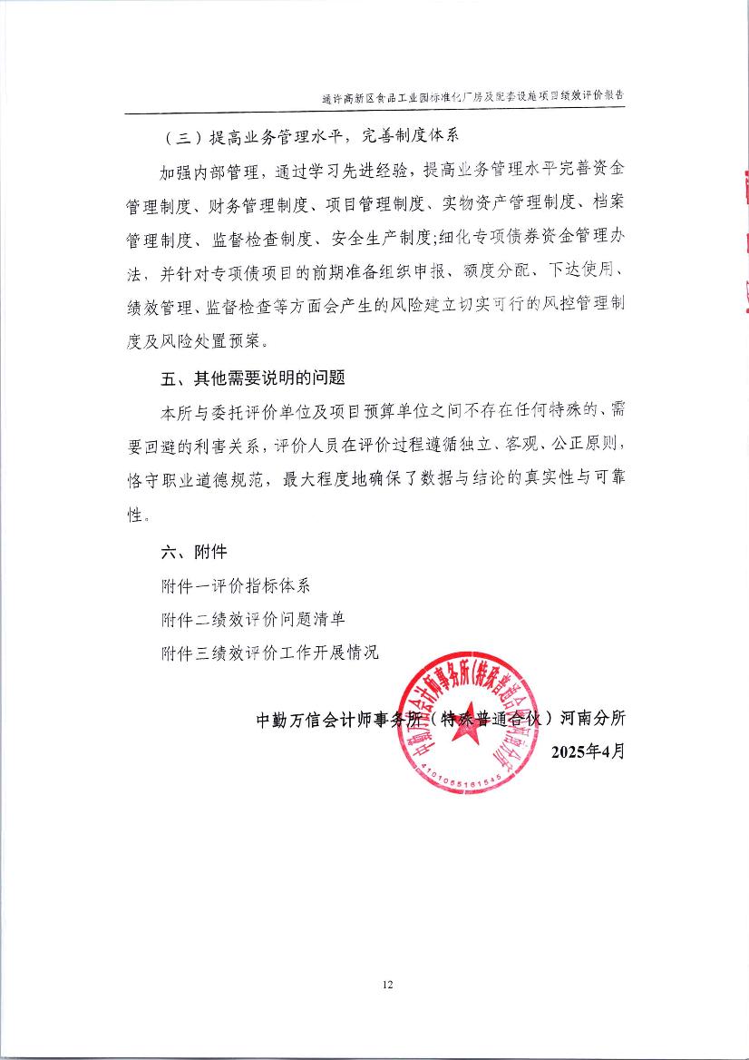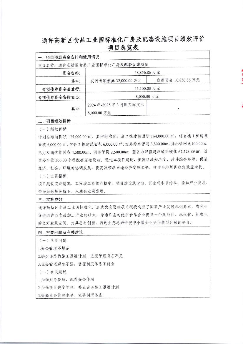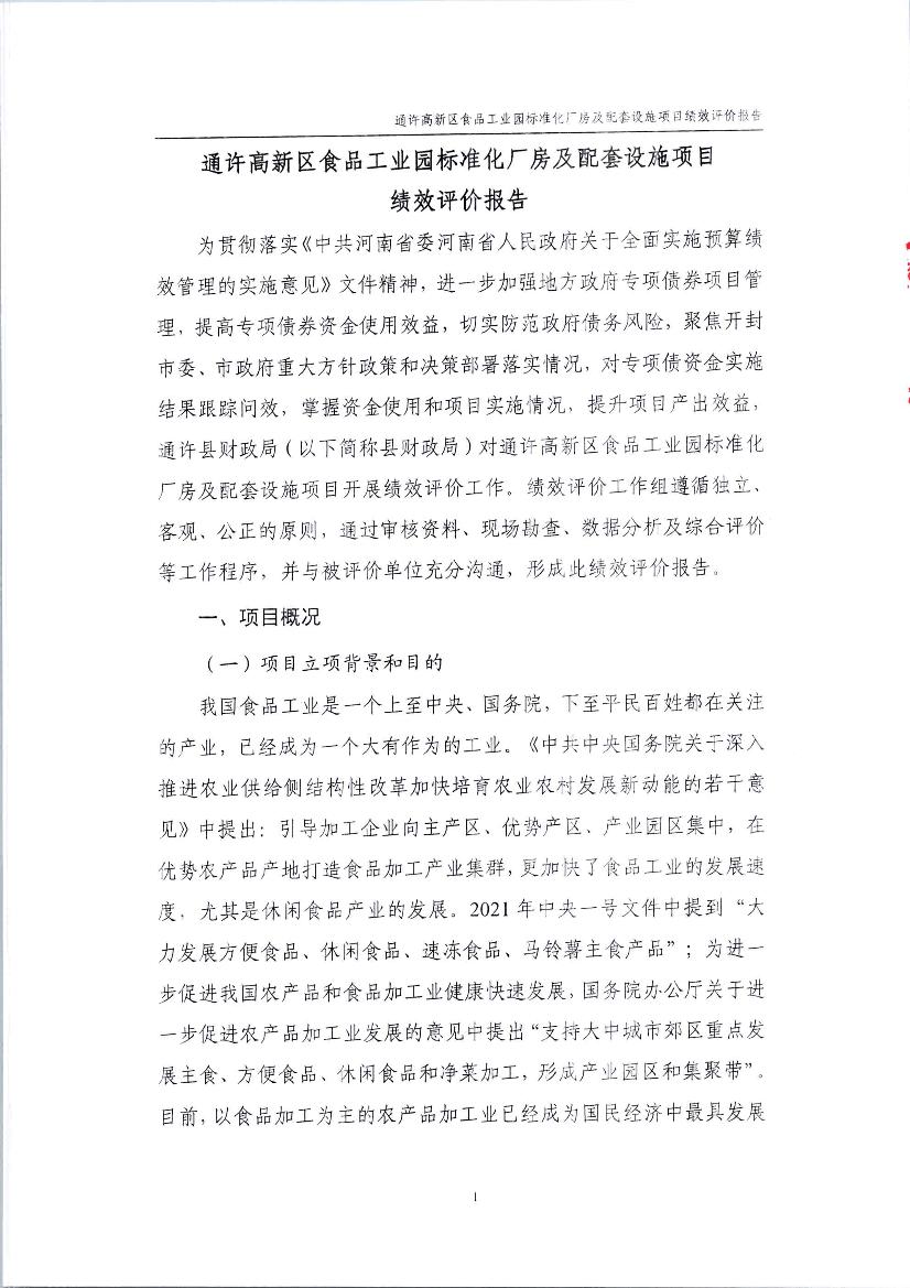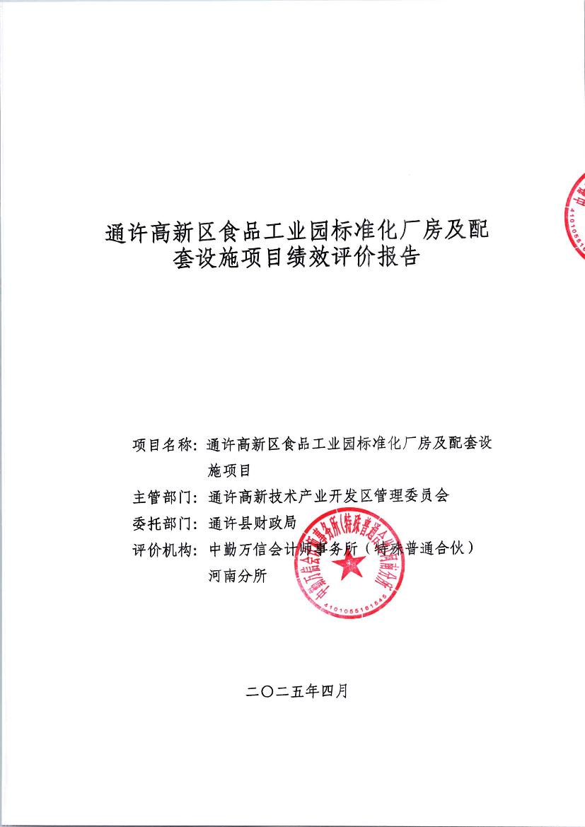 2025年度通许高新区食品工业园标准化厂房及配套设施项目绩效评价报告